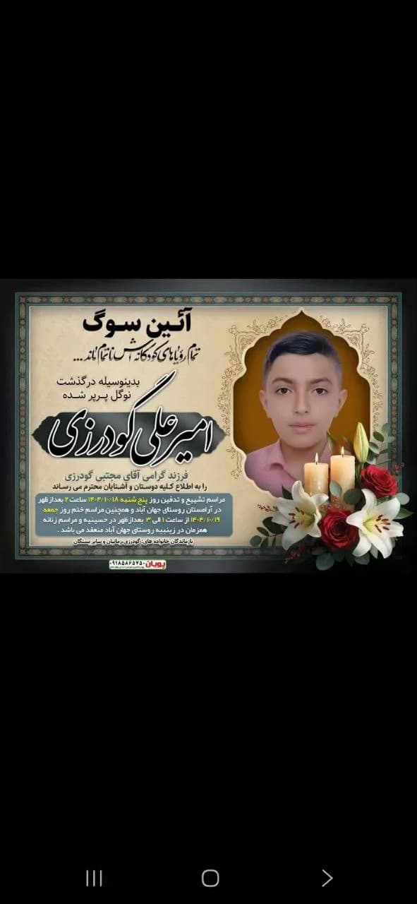 فرزند ایران و کشته شده در راه میهن جاویدنام امیر علی گودرزیان که نهاوندی هست و میخواسته بره اعتراضات اما خانواده مخالفت کردند و ایشان هم خودکشی کرده ....
