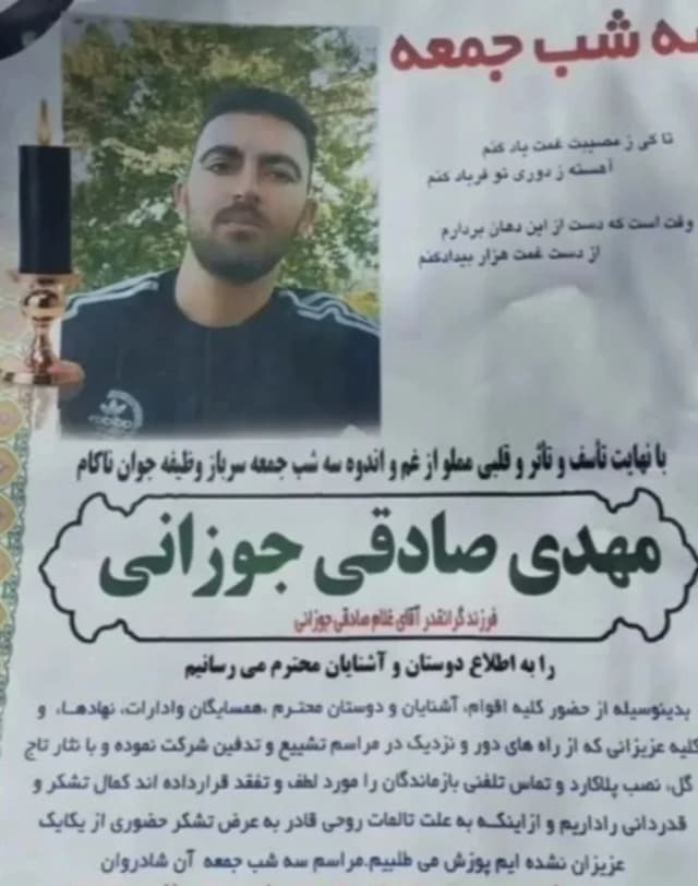 فرزند ایران و کشته شده در راه میهن جاویدنام امیر علی گودرزیان که نهاوندی هست و میخواسته بره اعتراضات اما خانواده مخالفت کردند و ایشان هم خودکشی کرده ....