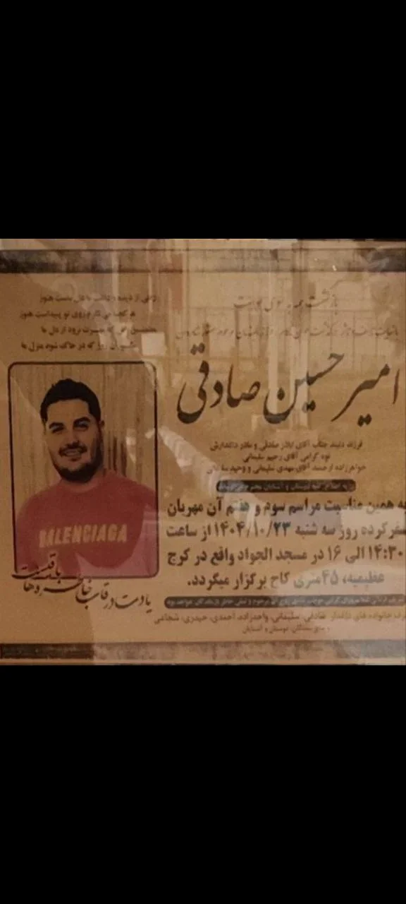 جاویدنام #طاها_صادقی_گزنی، ١٧ ساله. شهروند اندیشه-#کرج که با تیر مستقیم سپاه پاسداران به شهادت رسید