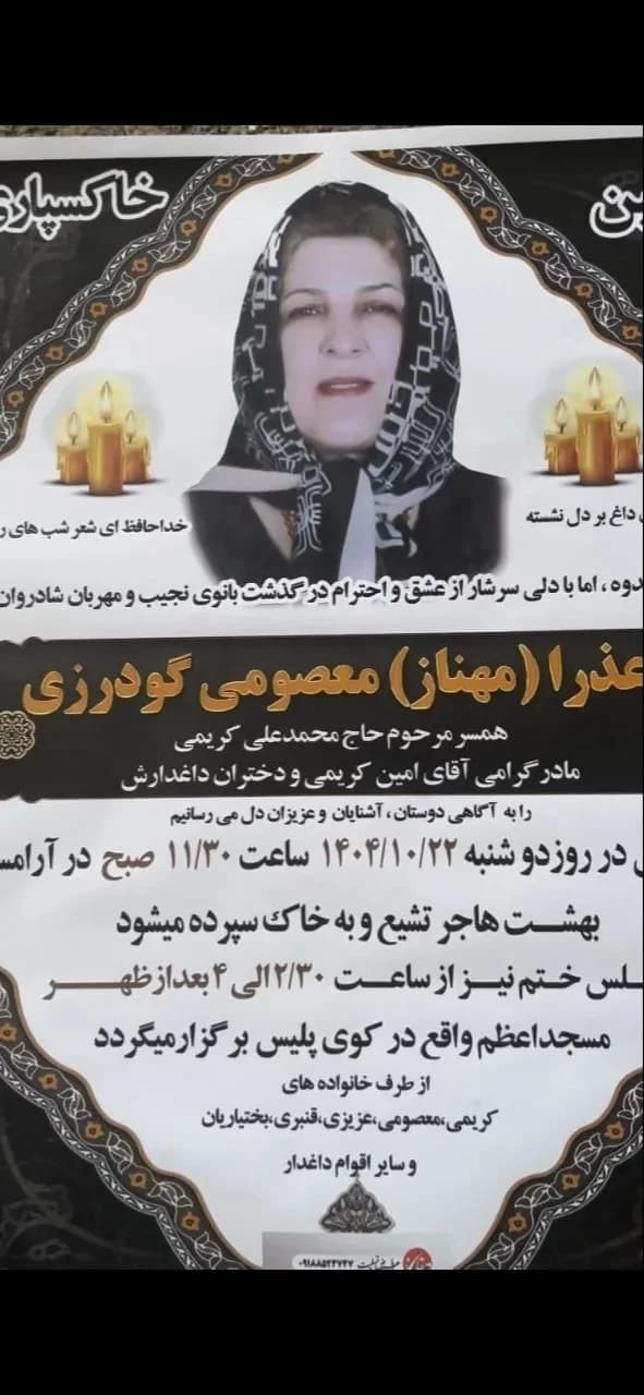 دلاور بانوی وطن و فرزند ایران کشته شده در راه میهن و آزادی بانو عذرا(مهناز )معصومی گودرزی در ملایر به دست تروریست های جمهوری اسلامی جاودانه شد